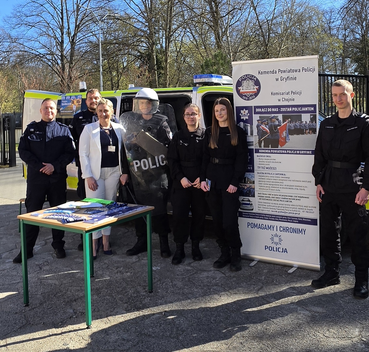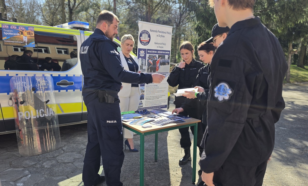 Obecni na miejscu funkcjonariusze opowiadali o realiach służby w Policji, przybliżali wymagania stawiane kandydatom oraz ścieżkę rekrutacyjną. Nie zabrakło również czasu na rozmowy indywidualne – policjanci chętnie odpowiadali na pytania młodzieży, rozwiewając wątpliwości i dzieląc się własnymi doświadczeniami. Dodatkowo uczestnicy wydarzenia otrzymali materiały informacyjne, które mogą pomóc w przygotowaniu się do procesu rekrutacji oraz podjęciu świadomej decyzji o wyborze tej wymagającej, ale niezwykle odpowiedzialnej ścieżki zawodowej.